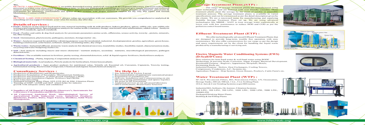 All concerned analytical work, microbiological survey of agricultural field, industrial area, industrial products, hatcheries, poultry, dairy, sugar factory, distillery, solid waste management.